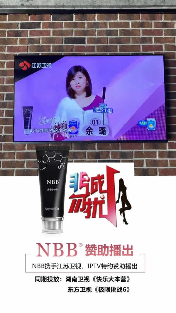 NBB战略合作江苏卫视《非诚勿扰》 加持品牌发展 斥巨资推广品牌曝光量 NBB品牌的发展世界有目共睹 一个大品牌的崛起犹如泱泱大国东方巨龙大中国雄狮 这是一个有使命的品牌 这是一个有责任的品牌 这是一个有专为男人缔造完美的品牌 ——享受性福生活选择NBB.——