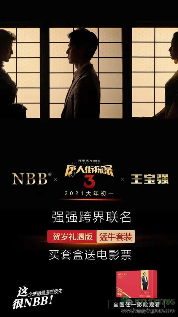 NBB跟《唐人街探案3》联名,定nbb猛牛套盒送电影票