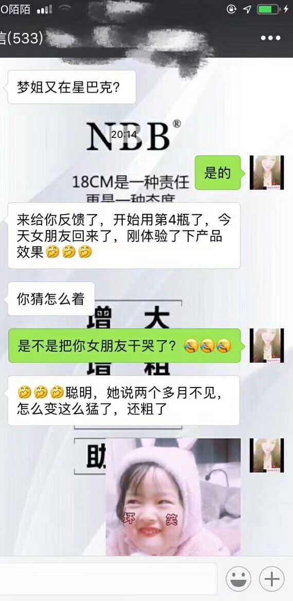 用了4瓶NBB男士修复膏之后,半夜发来反馈,大了差不多三分之一,长了应该有两公分 NBB修复膏看得见的效果,效果更摸得着,还不知道NBB男士修护膏是什么?尽快点击了解!做大男人,从NBB开始!