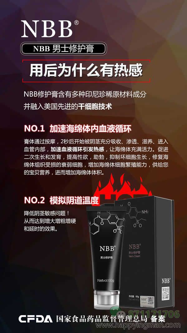 NBB修复膏千万不要乱用!假如一个男人那方面不可必定会冲击自傲心,许多作业有成的男人终究都留不住,难道是由于他们没钱吗?明显不是,实在的原因是那方面不可,让无法耐久忍耐,由于这方面而导致的不在少数,矮小对男人来说是致命冲击,每个男人都期望自身下面尺度足够大,能够降服心爱的女性,假如具有NBB男人修护…