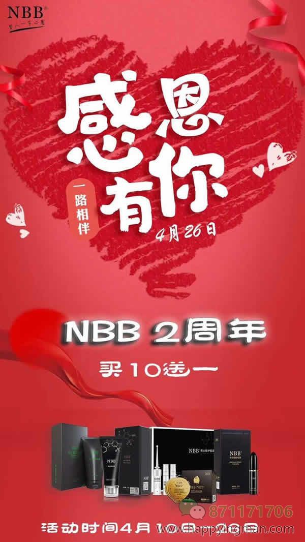 NBB两周年庆典 全球狂欢 “厚厚”的福利,NBB系列产品买10送1(一般用户都是使用1-2个周期,再加2盒巩固,一共就是10盒了,如果你必朋友一起拼着买,也是非常划算的,10盒送1盒同款哦!) 活动截止时间4月26日 史无前例的创业钜惠,错过不再,赶紧联系NBB官方客服老李吧:微信:jiuaiye…