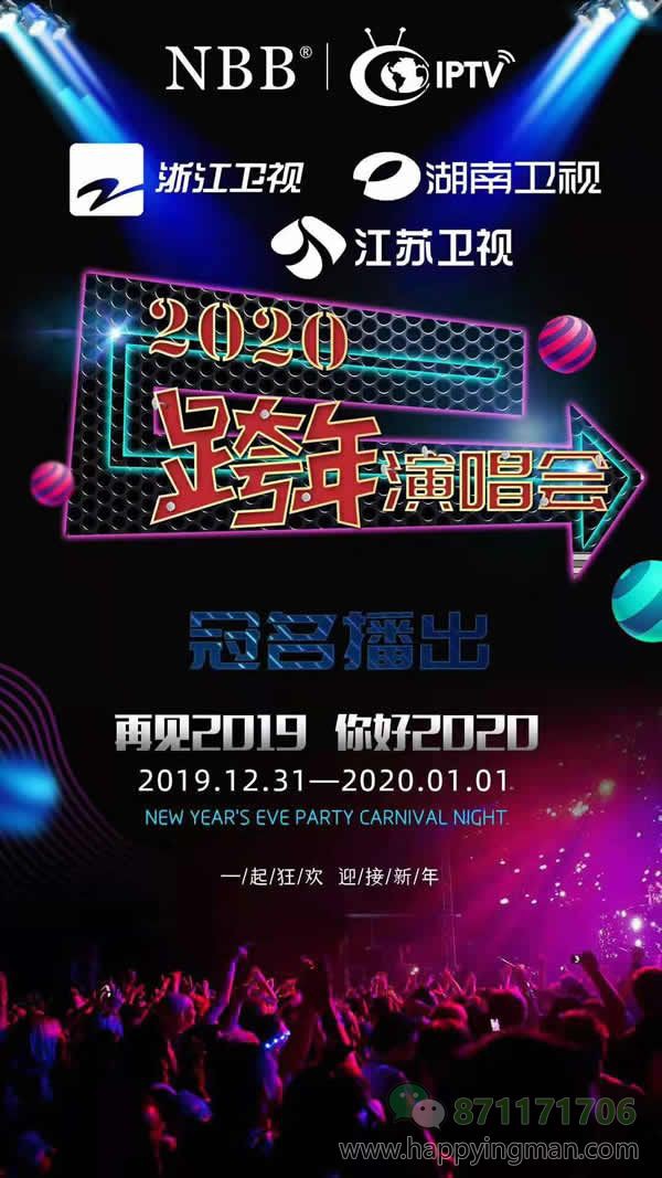 12月31号NBB的网络霸屏模式! 即将覆盖人群高达6亿人口! NBB品牌冠名2020年湖南卫视、江苏卫视、浙江卫视跨年演唱会! 电视卫视、爱奇艺、腾讯、优酷等全网直播!! NBB品牌冠名2020年湖南卫视、江苏卫视、浙江卫视跨年演唱会!电视卫视、爱奇艺、腾讯、优酷等全网直播‼…