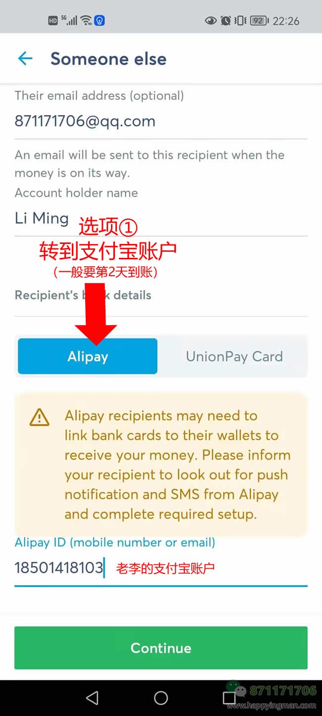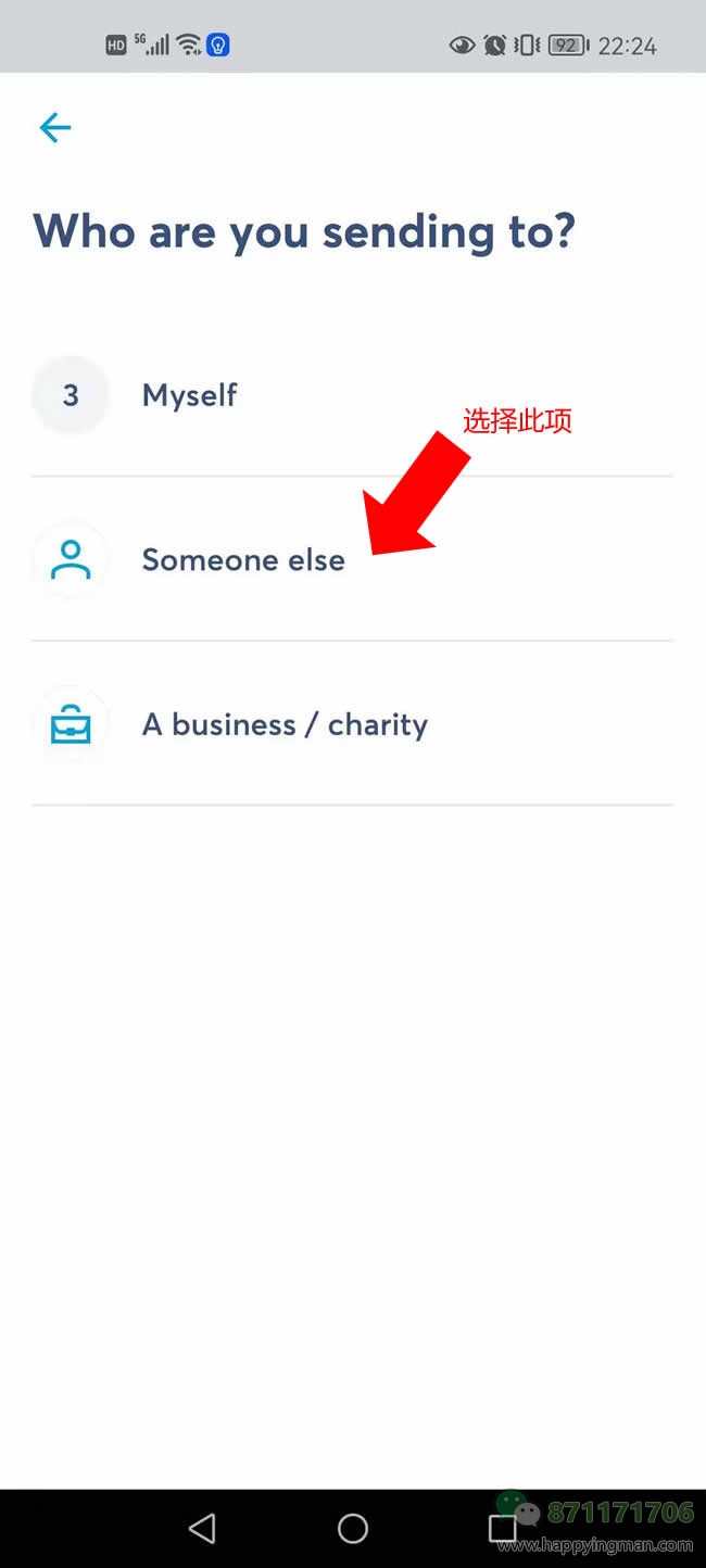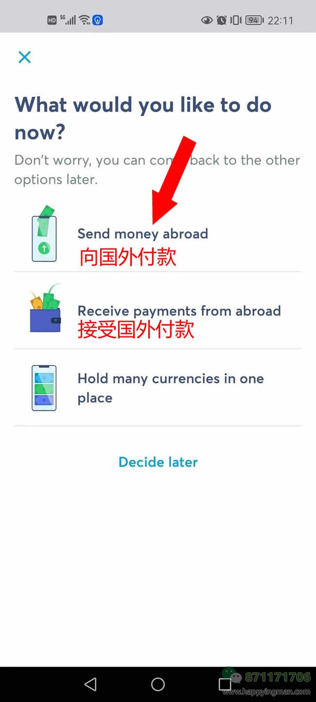 选择向国外付款(因为您在国外嘛,向老李付款,自然是选择这个啦~)