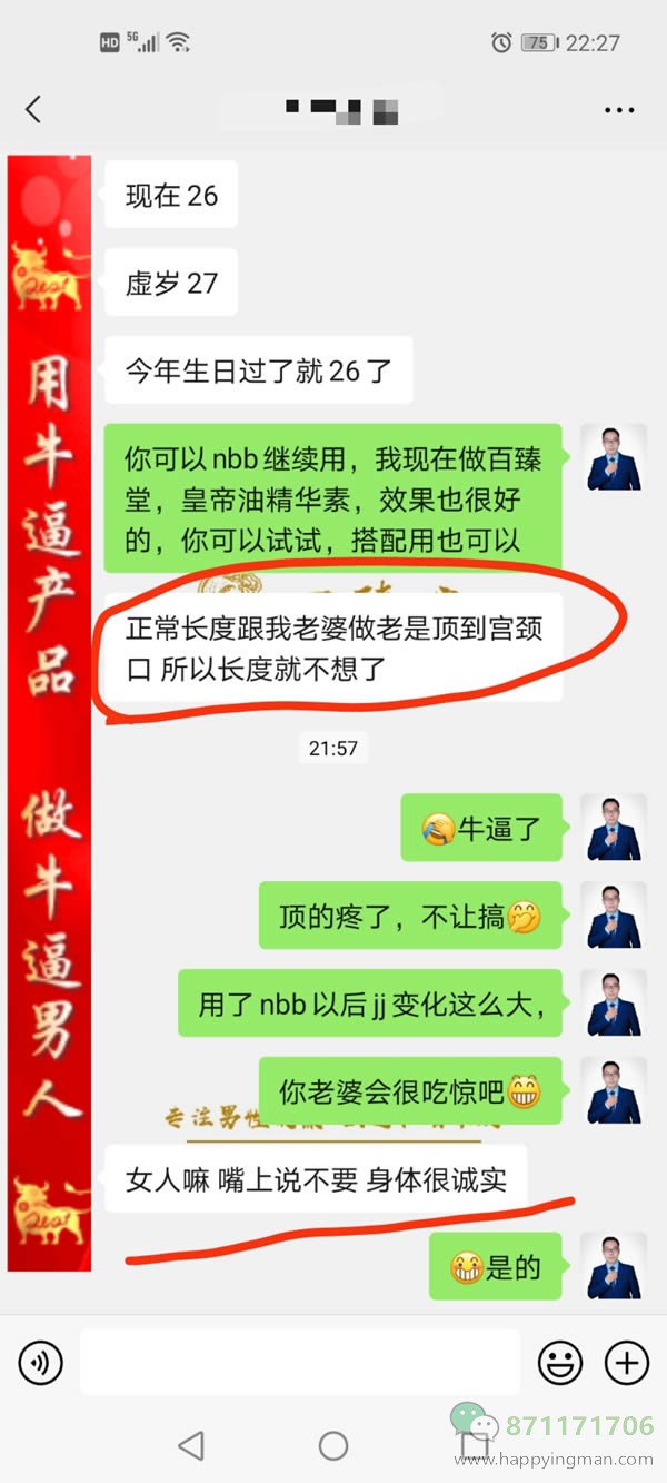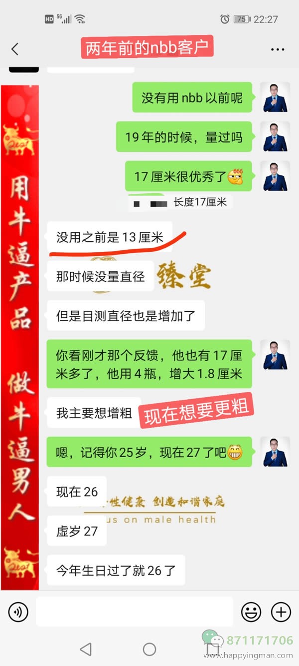 目前拥有17CM傲人的尺寸,每次做可以顶到他老婆的宫颈口,所以长度不想了,哈哈,再争取一下18CM也是可以的嘛。NBB停用后反弹吗?完全不必担心这个问题,想要更自信,NBB修护膏用起来吧,现在已经是NBB升级版了,效果更好哦。