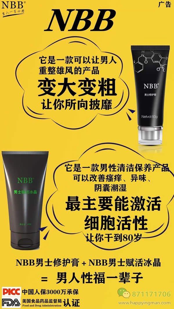 女人和男人一样,对于性欲的需求一样的,特别是30岁后的女人,如果你在这方面满足不了她,她在日常生活中就会给你脸色看,这个相信过来人都体会过的啦。女人每天用面膜保养皮肤,男人呢?当然要保养好自已的丁丁啦。用啥?nbb修复膏,nbb赋活冰晶,这个是首选产品啦。用过就会爱上它!