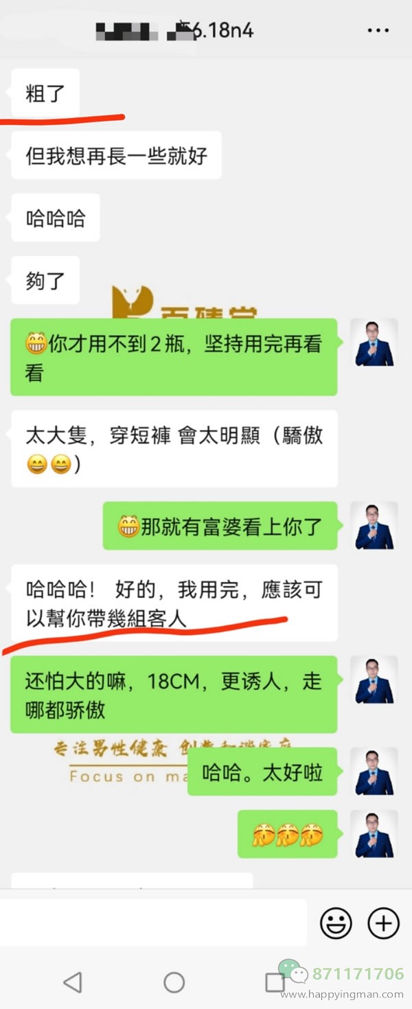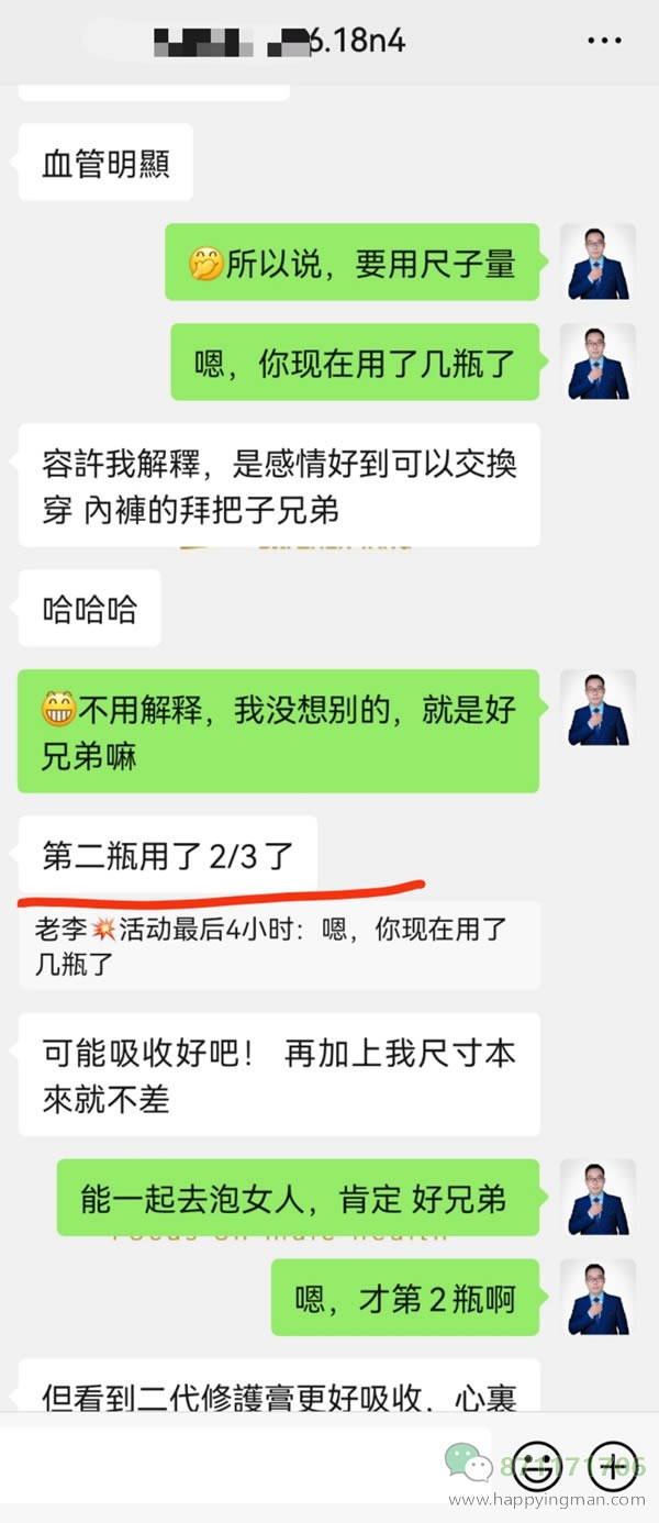 有人说,你这太假了,为什么我用了2瓶没有增大呢?这就要说到使用方法了,三天打鱼两天晒网的用法肻定是不行的,用量也很重要,一瓶用15天左右,有的人一瓶用了一两个月,有一次没一次的,这只能是保养,增大增粗,不太可能的了。