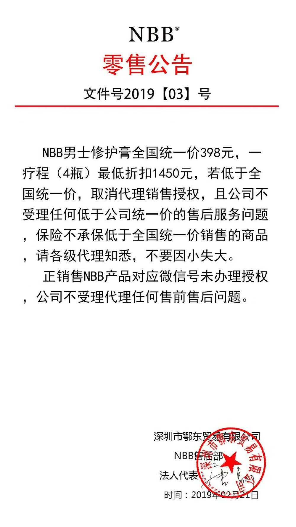 首先要告诉大家,凡是正品代理商,都有官方授权,这个授权在公司官方公众号(NBBCHN)上面是可以查询到的。查询方法可以查看:查nbb防伪码查询官方公众号验证步骤