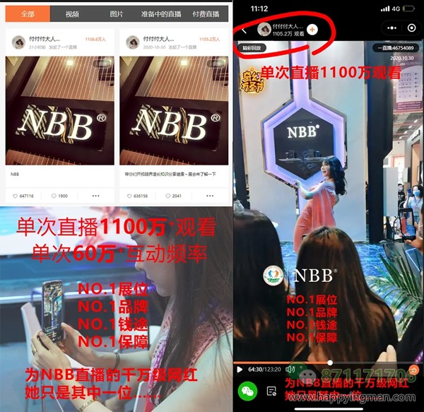 各路媒体纷纷追踪报道NBB品牌、采访董事长唐勇刚及代理商们,还有腾讯网、网易新闻、凤凰网、抖音、快手等媒体平台,千万人次的曝光量,将NBB品牌传播至全球各地。