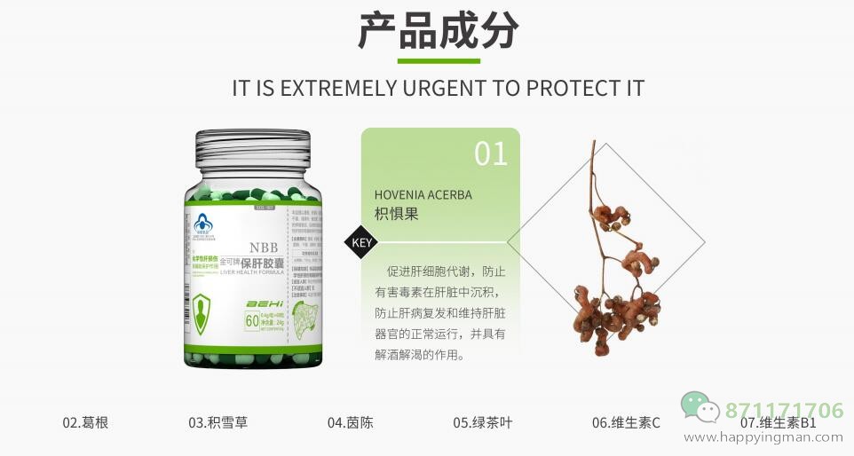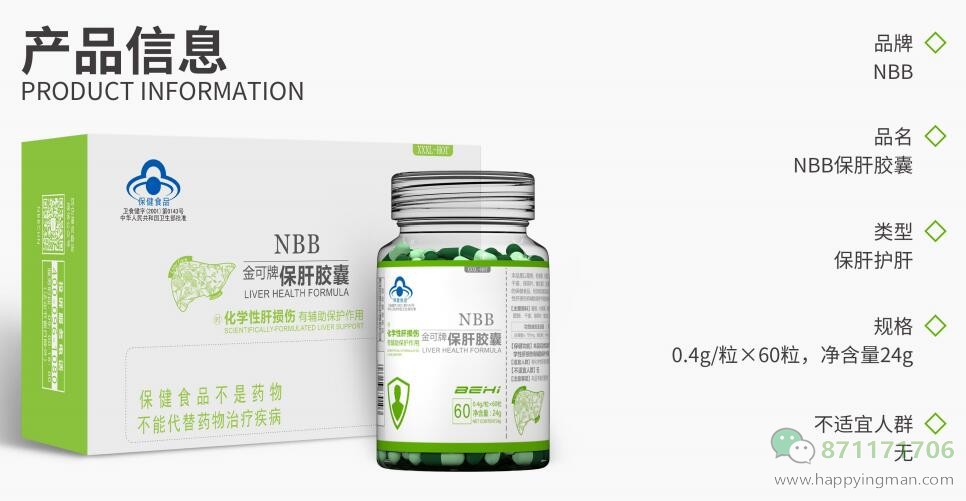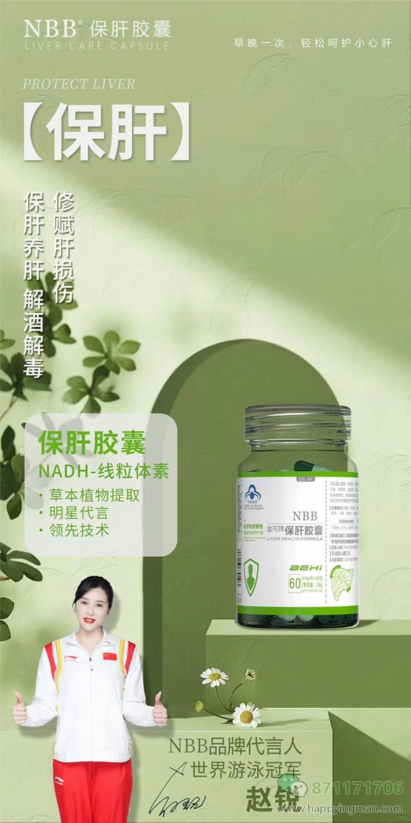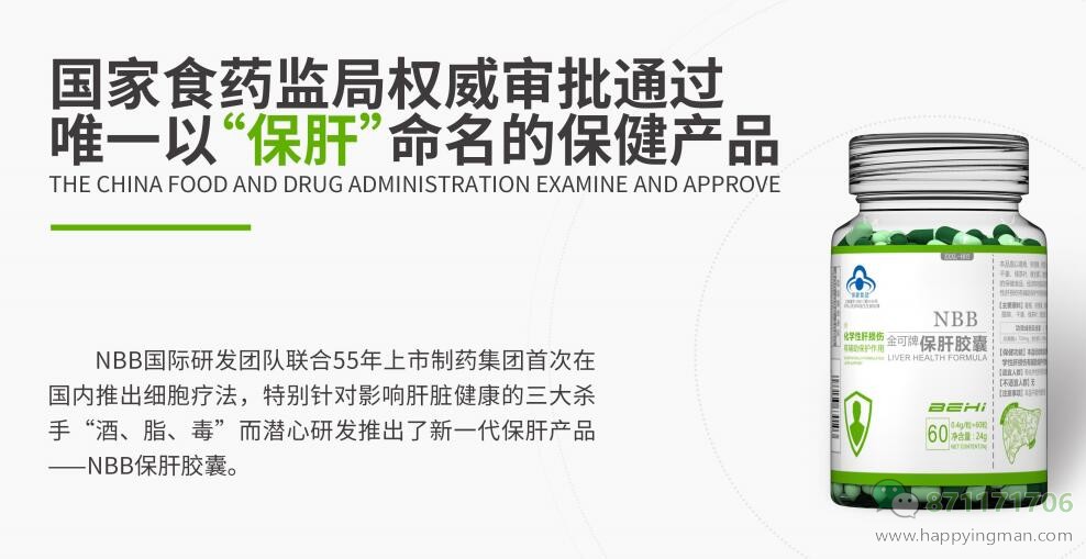 随着生活节奏加快,对肝养护迫在眉睫。 NBB保肝胶囊,每日六粒,保肝养肝 世界冠军代言,草本植物提取,让你不再担忧肝脏问题。