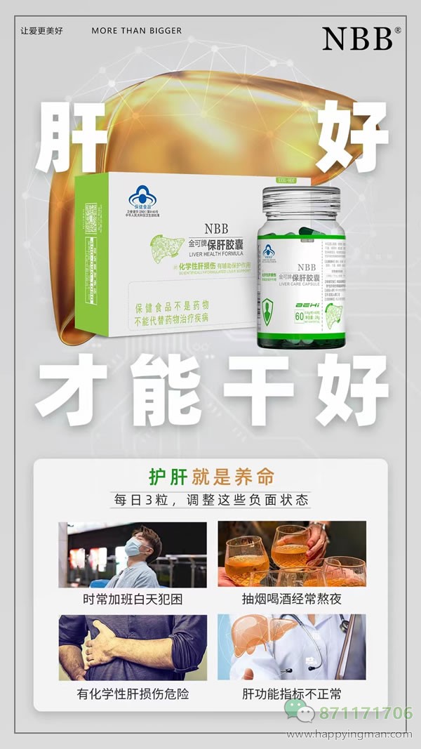 保肝 养肝,每天都要进行,不要等到肝受伤了,才知道,那时候已经晚了,NBB保肝胶囊,保护你的小心肝,肝好了才能干好!酒局频繁 如何应对 酒前来三粒NBB保肝胶囊 解酒解毒 保肝养肝 修赋肝损伤 让你身体保持健康状态