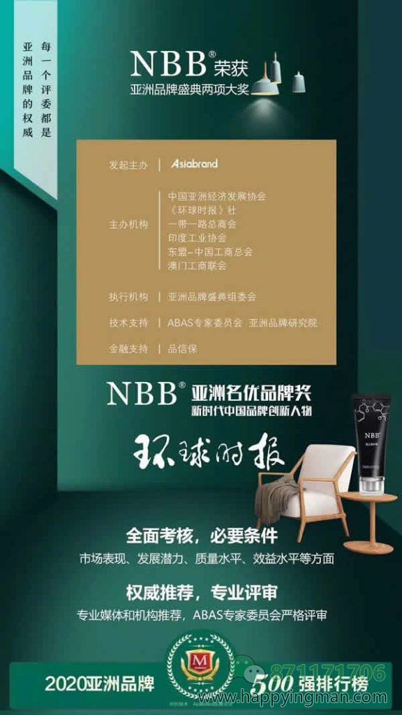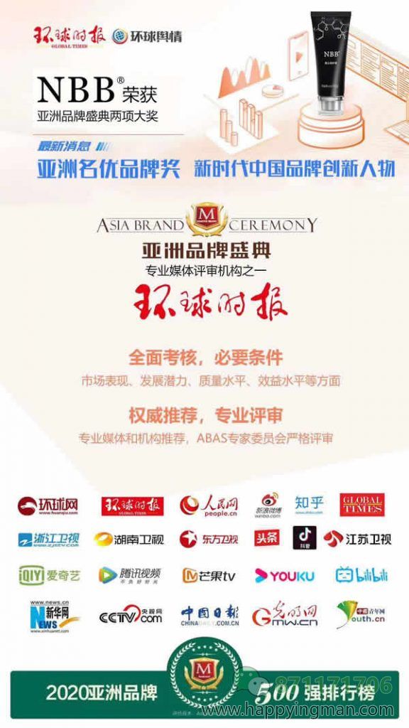 全球最具影响力的报刊之一,环球时报是亚洲品牌盛典的专业媒体评审机构之一,第15届亚洲品牌盛典授予NBB“亚洲名优品牌奖”和董事长唐勇刚“新时代中国品牌创新人物”两项大奖,以表彰NBB在大健康行业的影响力。
