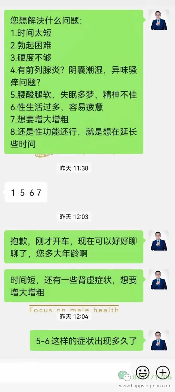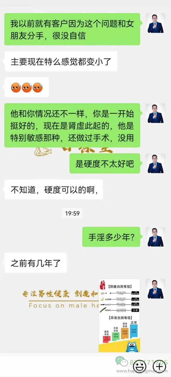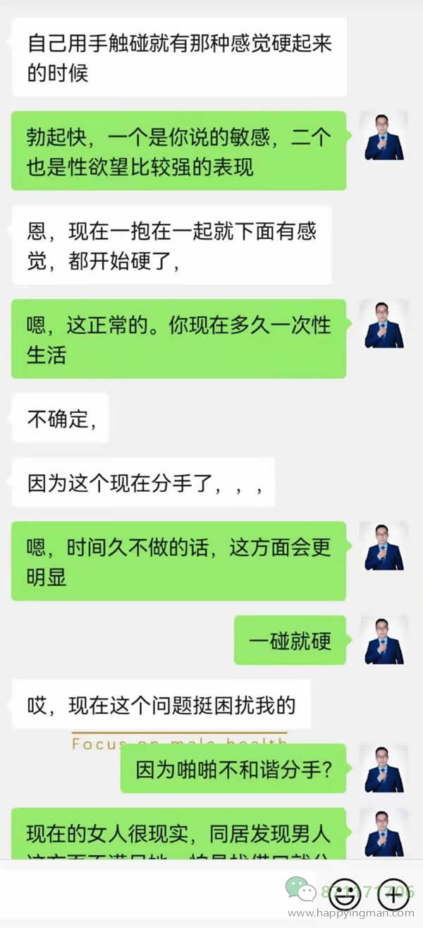 今天,老李接到一位26岁小伙子咨询,他说:以前时间长,现在变得时间很短,很敏感了,一插入就想射的感觉,因为这个,女朋友跟他分手了!!!怎么办?我把和他的部分聊天记录截图出来了